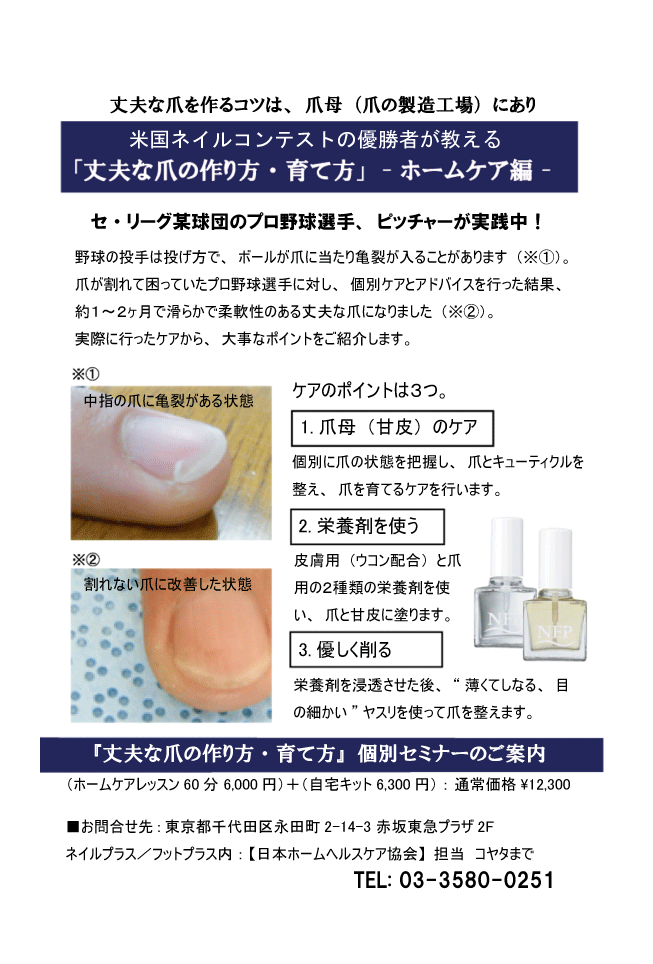 ネイルプラスより「美しい爪」になるためのワンポイントアドバイスや皆様からの声などをコラムとしてご紹介します。